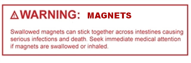 CPSC offers the following tips to avoid magnet ingestion injuries and advice on what to do if you suspect that your child has swallowed magnets: Keep small magnets away from young children who might swallow them. Look out for loose magnet pieces – and regularly inspect toys and children’s play areas for missing or dislodged magnets. If you suspect that magnets have been swallowed, seek medical attention immediately. Look for abdominal symptoms, such as abdominal pains, nausea, vomiting and diarrhea. Note that in x-rays multiple magnetic pieces may appear as a single object.